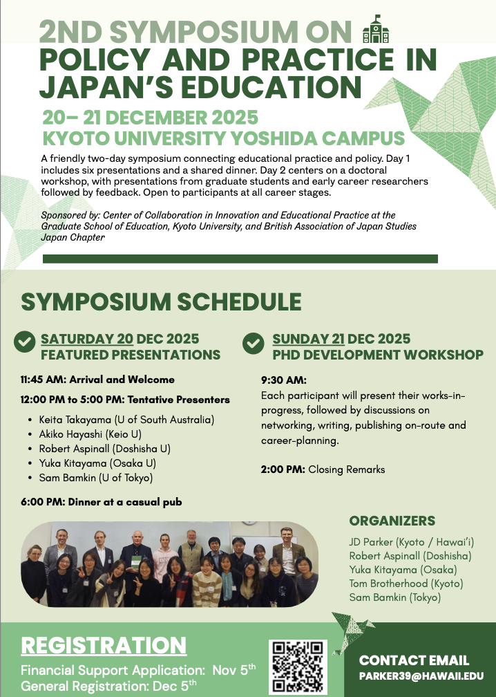 招待講演のお知らせ Invited Talk at 2nd Symposium on Policy and Practice in Japan's Education